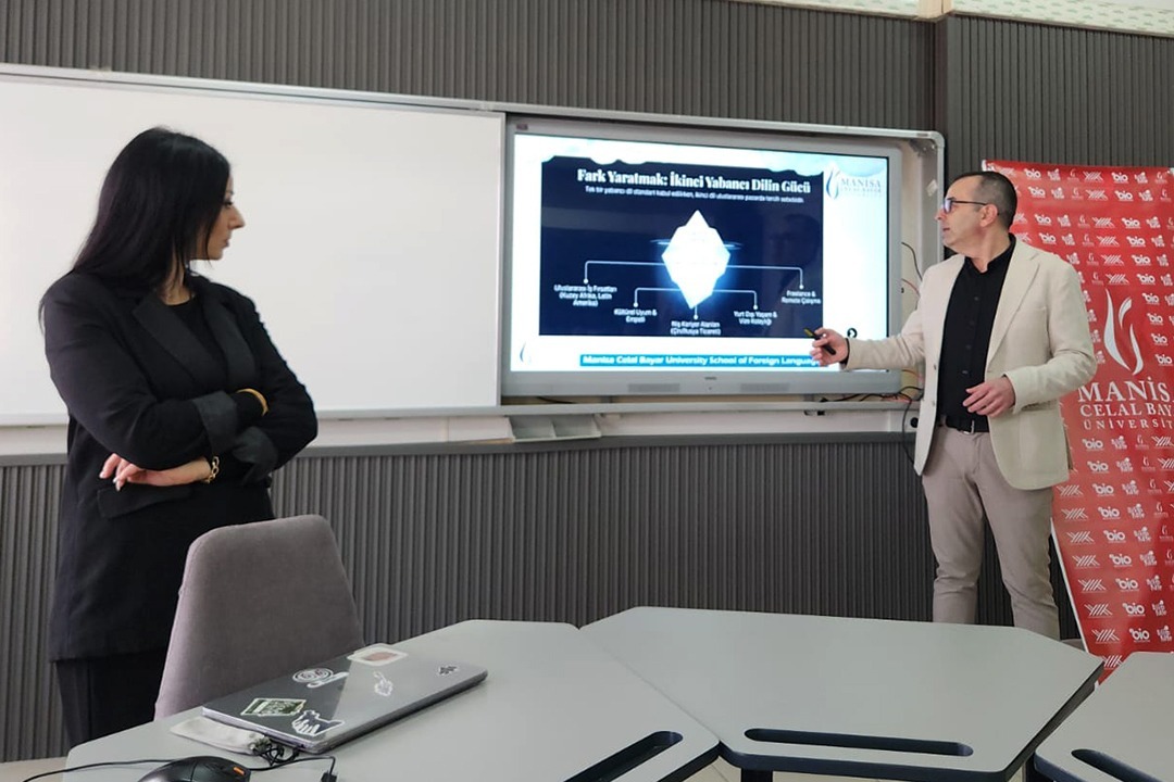 Yabancı Diller Yüksekokulu Müdür Yardımcısı Öğr. Gör. Dr. Ali Ceylan ve Öğr. Gör. Nazlı Saraç tarafından gerçekleştirilen söyleşide, İngilizcenin küresel iş dünyasındaki önemi, ikinci ve üçüncü yabancı dilin kariyerde sağladığı rekabet avantajı, çok dilliliğin bireyi uluslararası platformlarda güçlendirmesi, uluslararası eğitim ve burs fırsatları, çok uluslu şirketlerdeki kariyer imkânları ile dil öğrenmenin zihinsel ve akademik katkıları ele alındı.